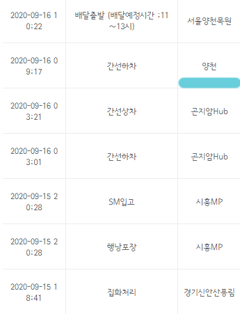 한 가지 정보로는, 군포 용인 대전 곤지암 등의 대형 hub에서 상차가 된 이후에,