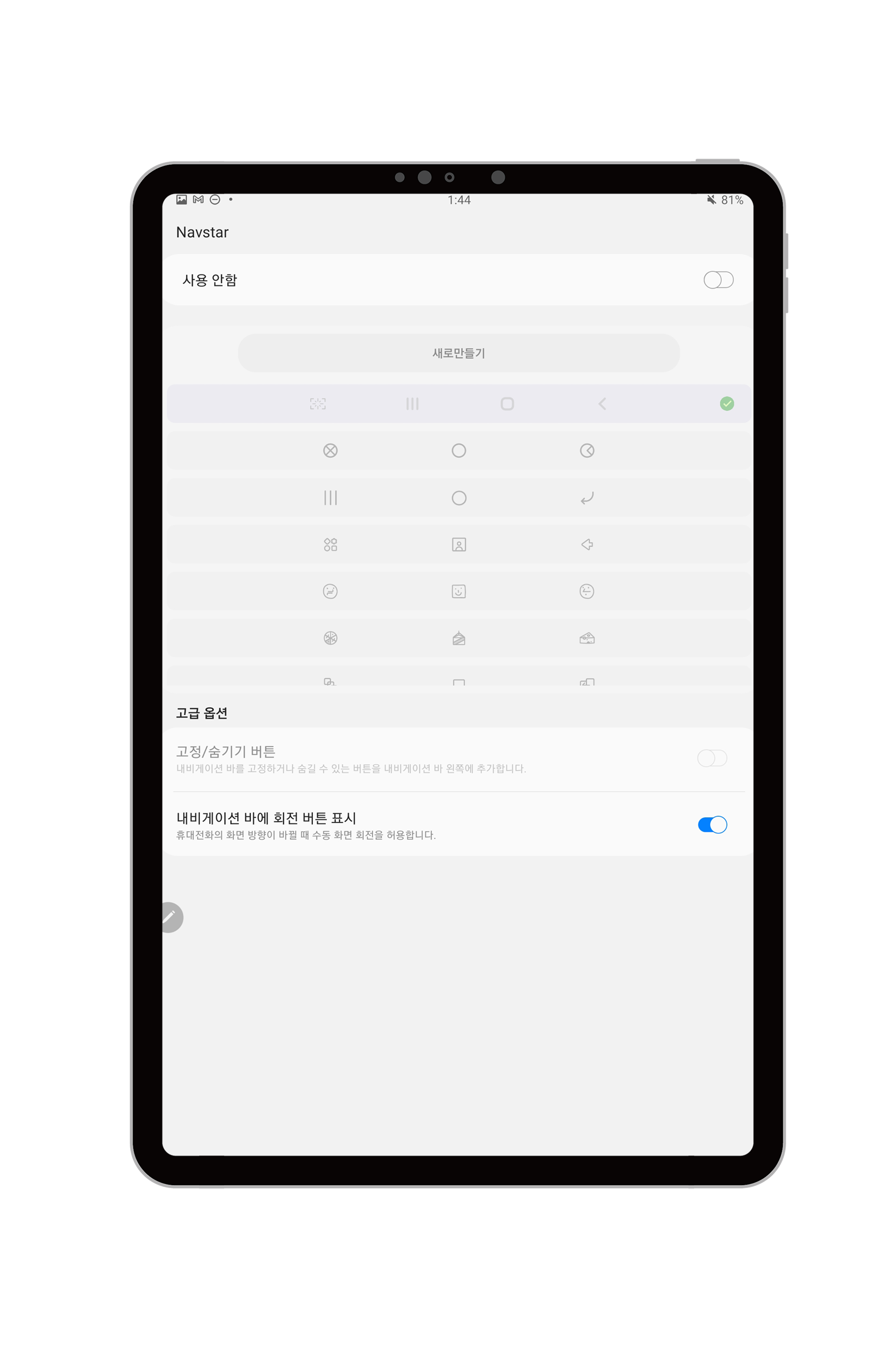 이 옵션에서 내비게이션 바에 화면 캡쳐 아이콘을 넣을 수 있었거든요.