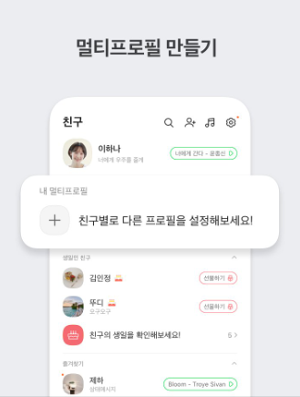 멀티프로필은 내 친구목록에 있는 친구들에게 각기 다른 프로필을 보여줄 수 있는 기능입니다.