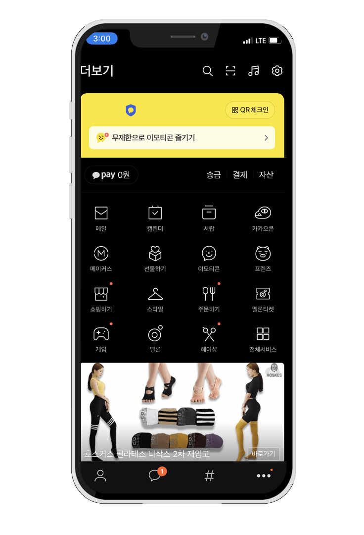 카카오톡 맨 오른쪽 ˚˚˚으로 들어가주세요.